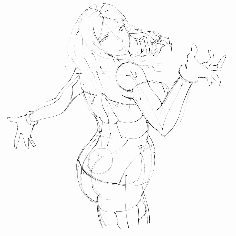試しにその参考のために棒人間から肉付け→細部の順で模写してみた